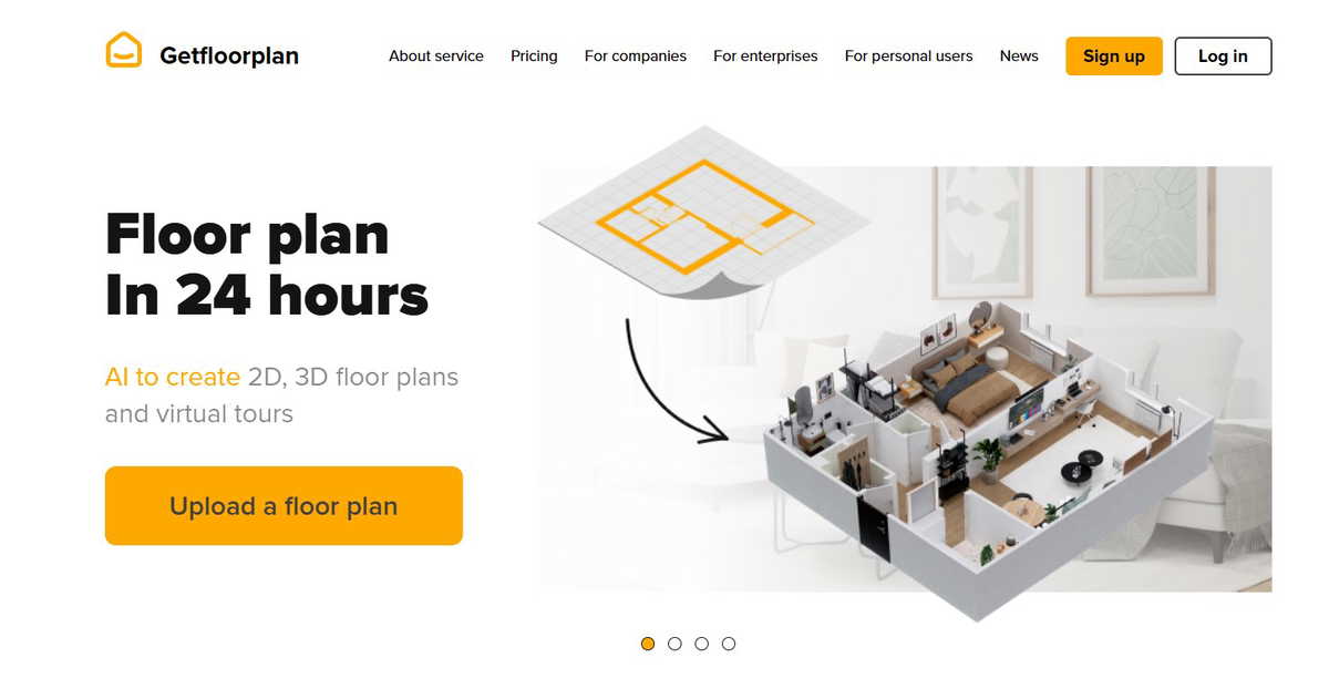 Getfloorplan is an AI-powered service that creates 2D and 3D floor plans, virtual tours, and high-quality visualizations for real estate properties. Users can u