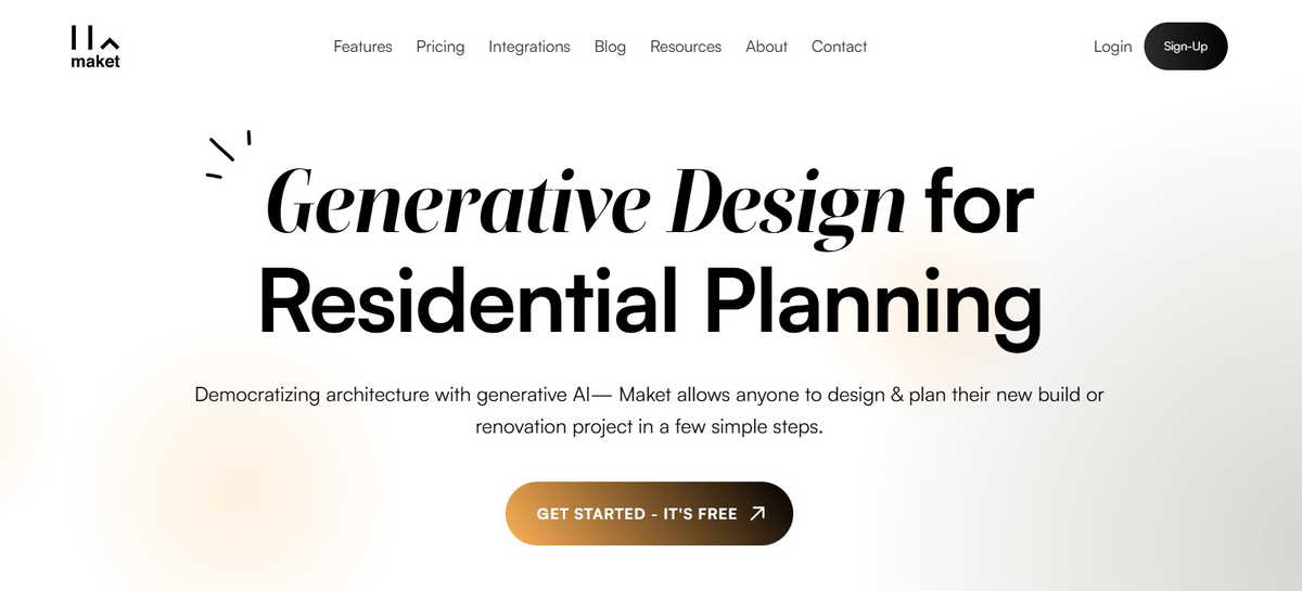 Maket is a generative design platform that simplifies residential planning by allowing users to create and customize architectural floorplans quickly and effici