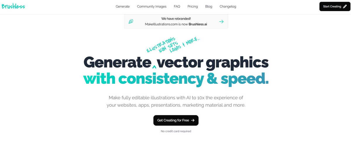 Brushless.ai is an AI-powered platform that allows users to generate customizable vector graphics, including illustrations, icon sets, and logos, quickly and ef
